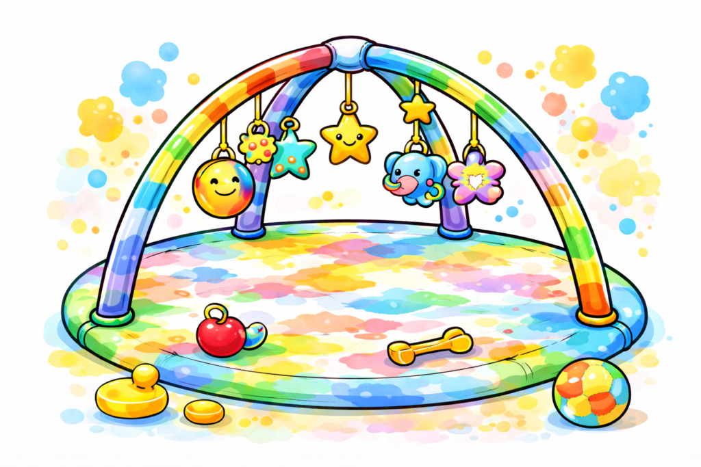 赤ちゃん用のプレイジムや知育マットは種類が多く、成長段階に合うものが分かりにくいのが正直なところです。寝返り前、寝返り後、おすわり期と、発達に合わせて必要な刺激も変わってきます。「長く使えるものがいいのか」「今の月齢に合うものを選ぶべきか」で迷う家庭は多いと思います。